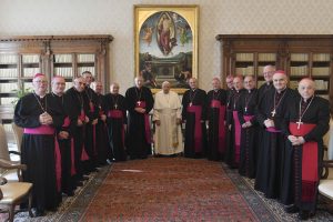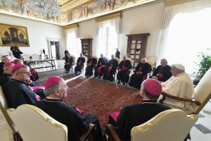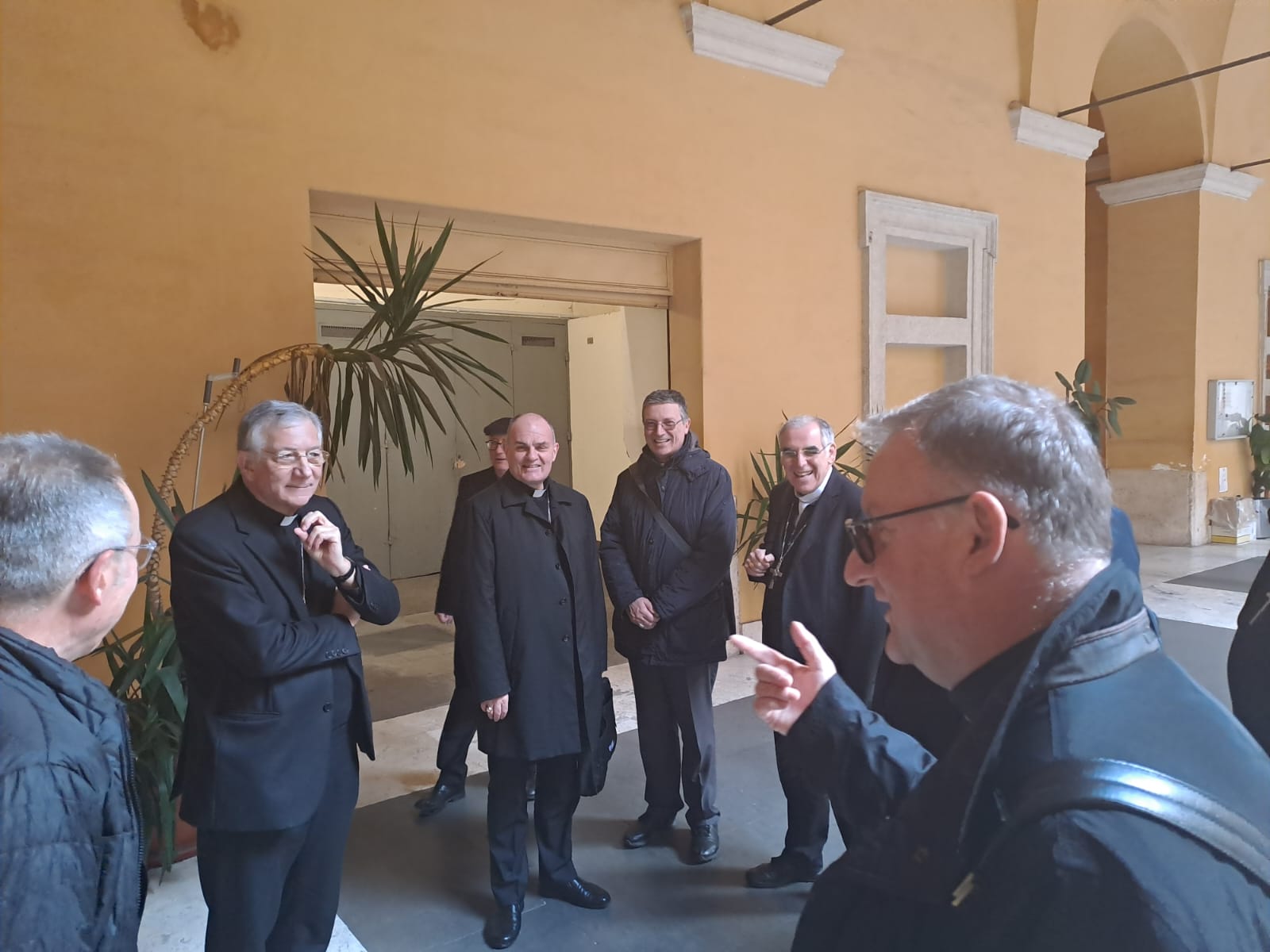 Sta continuando a ritmi serrati la Visita ad limina dei Vescovi della Conferenza Episcopale Triveneto che oggi, mercoledì 7 febbraio, hanno avuto ben quattro incontri con altrettanti Dicasteri vaticani: tre al mattino (Dottrina della fede, Istituti di Vita consacrata e Società di vita apostolica, Cultura e Educazione), uno al pomeriggio (Dicastero della Comunicazione).