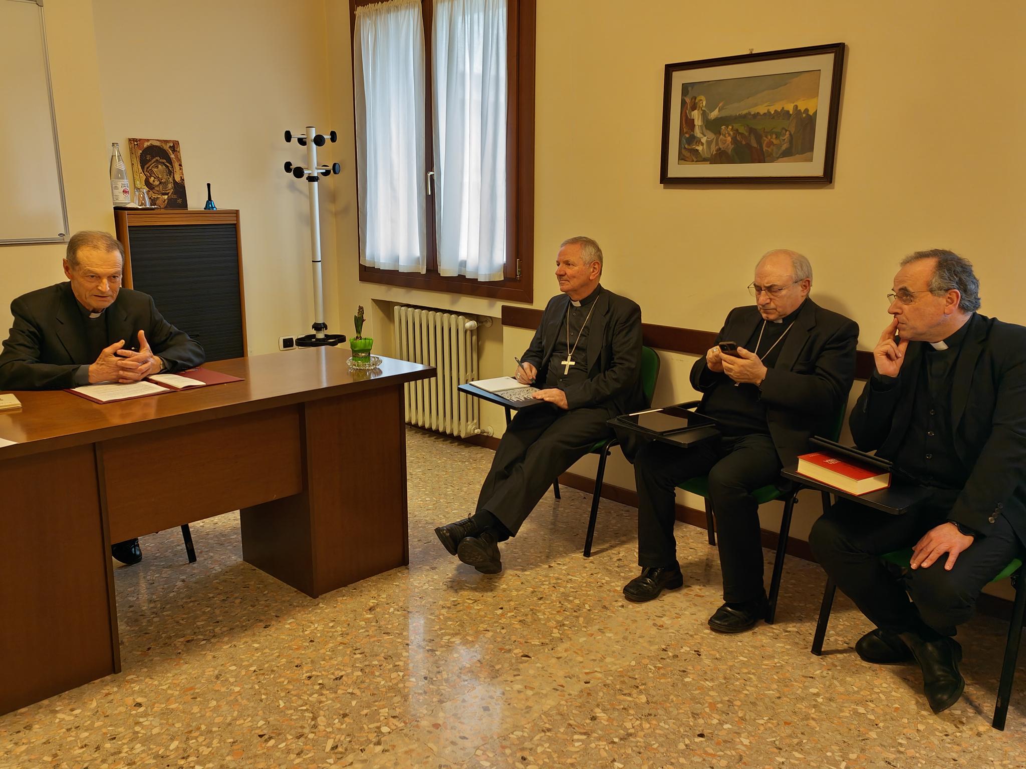Nel pomeriggio di venerdì 1 marzo, sempre a Costabissara (Vicenza), i Vescovi hanno poi svolto anche una riunione ordinaria della CET che è stata in buona parte incentrata sull’incontro con i vertici della Caritas Italiana, ossia con il presidente mons. Carlo Roberto Maria Redaelli (già membro di questa Conferenza in quanto Arcivescovo di Gorizia) e con il direttore don Marco Pagniello; è stata l’occasione per riflettere sulle finalità e le linee di azione della Caritas Italiana e per analizzare – anche sulla base di un recente sondaggio – il rapporto esistente nelle varie realtà tra la Caritas, le Diocesi e i Vescovi. Si è parlato inoltre del prossimo convegno nazionale Caritas che si terrà in territorio triveneto dall’8 all’11 aprile 2024 a Grado (con alcune tappe a Gorizia): avrà come titolo «Confini, zone di contatto e non di separazione. “Non passare oltre senza fermarti” (Genesi 18,1-8)» e rappresenterà una preziosa opportunità non solo d’incontro tra i delegati delle Caritas diocesane provenienti da tutta Italia, ma anche quale occasione di conoscenza, condivisione e crescita per l’intero territorio.